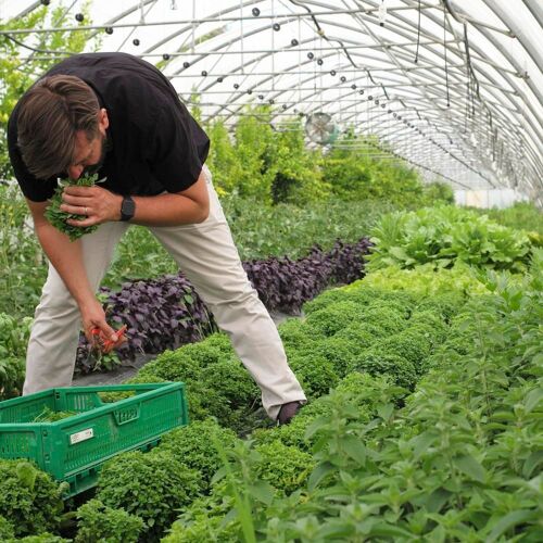 "La Galinette, c’est un restaurant mais aussi un potager, un verger et une oliveraie, soit deux hectares cultivés en agriculture biologique depuis plus de 20 ans. Le chef sélectionne les graines pour assurer un maximum de diversité dans les textures, les saveurs et les couleurs dans l’assiette, ce qui favorise aussi la préservation du patrimoine génétique des plantes. Les déchets organiques de la cuisine sont transformés en compost."