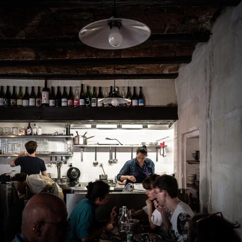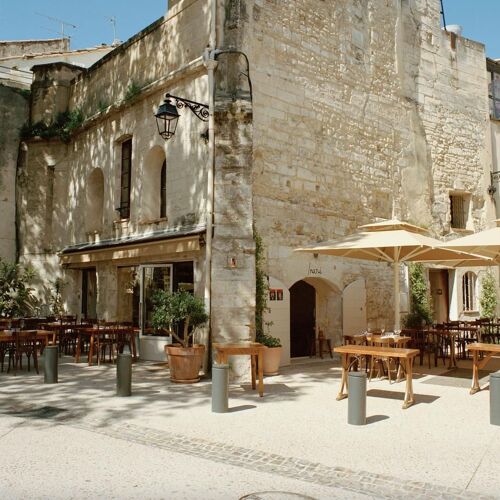 Passée par certaines tables parisiennes emblématiques (Ze Kitchen Galerie, Saturne, Septime), la cheffe Céline Pham, habituée des tables nomades, a posé ses couteaux au cœur d'Arles dans une ancienne chapelle à la déco vintage. On retrouve avec un vif plaisir les marqueurs de sa cuisine fusion franco-vietnamienne, précise et gourmande, où le végétal, on s'en doute, s'impose souvent. Un exemple ? Filet de rouget, pain d’épeautre, tomates confites, fumet de rouget à l’huile de garrigue, courgettes jaunes et chrysanthème. Petite carte de vins nature.