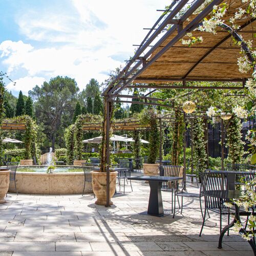 Au sein d'un hôtel luxueux avec golf, spa et piscine, une table soignée, rendant un vibrant hommage à la tradition régionale – comment pourrait-il en être autrement sur ces terres privilégiées, au pied des Alpilles et des Baux ? Paradoxe : cette passion du terroir provençal, on la doit à un jeune chef belge, Lieven Van Aken, qui a commencé sa carrière à Bruxelles puis chez Michel Guérard. Les recettes sont précises, ce qui n’exclut ni l’audace, ni l’intensité : bouillabaisse végétale et rouille au safran ; ris de veau fumé et grillé, tartare d'algues et langoustines de Méditerranée. La terrasse, sous des platanes centenaires, n'est pas moins délicieuse...