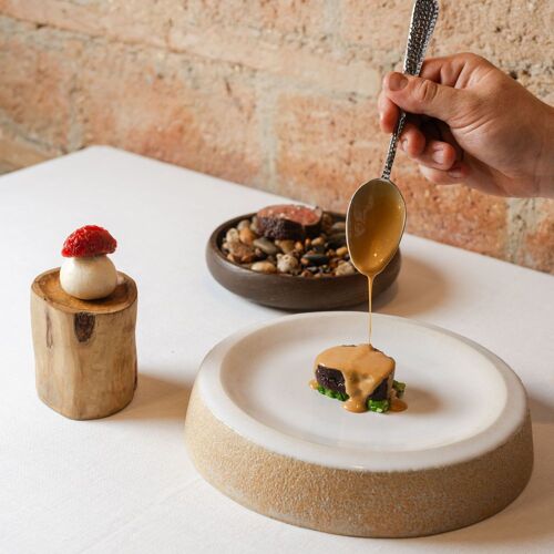 Some people call Ronda the “city of dreams”. But without drifting off into reverie, we are indeed talking about one of the most beautiful towns in Andalucia, where Bardal, not far from the impressive bridge over El Tajo de Ronda, is now a flagship of the local restaurant scene. Here, chef Benito Gómez, a Catalan by birth who has made the region his home, cooks up creative cuisine, steering clear of gimmickry and labels, while the recognisable flavours in his cooking have a connection to local tradition and are transformed into a subtle interplay of contrasts and textures. Diners are given a choice of two tasting menus with different numbers of courses (Bardal and Gran Menú Bardal). Both come with wine-pairing options and a trolley with a large selection of cheeses prior to dessert. One section of the menu we especially liked was the trilogy of grilled heart of lettuce with a beef emulsion, Bágoa peas with Payoyo cheese, and chicken skin and shrimp.