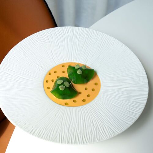 Cyril Moulin and Florian Vanderhoeven craft intelligent cuisine that is both bold and polished. Big-boned sauces and playful fresh nuances set the culinary scene. For example, they may pair textbook perfect cod with seaweed, pistachios and a zest of lemon, while velvety green asparagus, a light frothy espuma of seaweed and a pistachio crumble conclude the dish. The chefs conjure up recipes in which outstanding ingredients are delicately and harmoniously assembled. Steven Wullaert suggests insightful food-wine pairings. The scene takes place in a tastefully revamped farmstead surrounded by meadows: huge windows, exposed beams and works of art. A gourmet getaway destination par excellence!