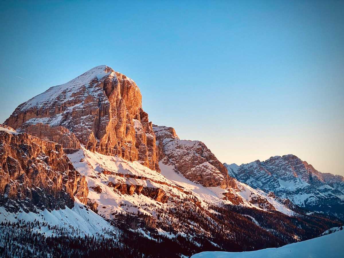 Hero Image: The dazzling Gallina mounatin pass at sunset in the Dolomites, Italy. © Cortina Marketing