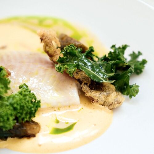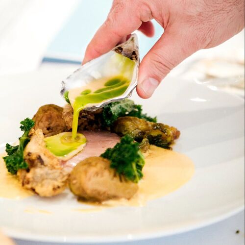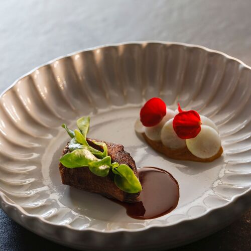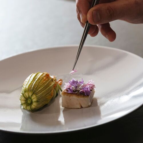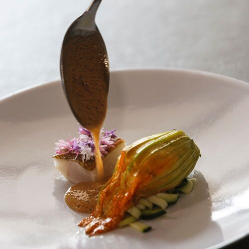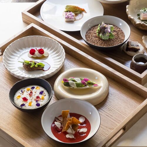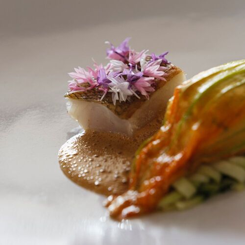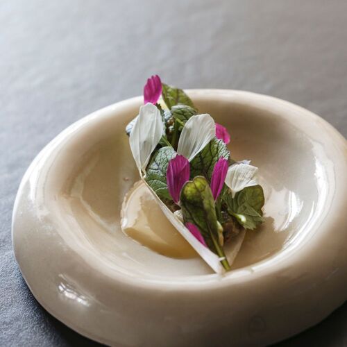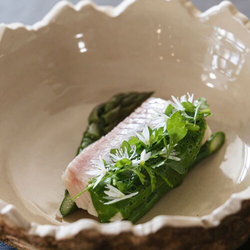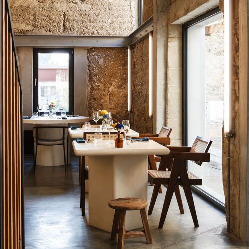 Chef-patron Maxime Szczepaniak switched from construction to cooking, teaching himself the trade during lockdown, before being hired as a chef de partie without any experience. Now he has set up shop in a listed stone house in the centre of the village. The pared-down space with exposed stone walls and waxed concrete floors also hosts exhibitions by local artists. First and foremost, however, it is the setting in which he serves his vibrant cuisine. The food centres on local produce: stuffed courgette flowers, pike-perch and asparagus, lake trout with watercress, strawberries and meadowsweet are all dishes on the reasonably priced lunch menu.