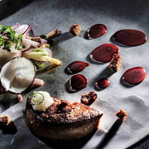 Chef Valentin Chambonnière arrived in this pretty, contemporary bistro in a pedestrianised street just off Place de Jaude and near the church (Église St-Pierre-les-Minimes) in spring 2023. He serves up generous, contemporary cuisine based on savvily prepared seasonal ingredients. The creative and masterful menu is replete with tangy flavours: the Jerusalem artichoke – in gnocchi and crisps – topped with pan-fried guanciale pieces strikes a hearty note; a dish of slow-cooked leg of lamb and shoulder of lamb candied with spices offers appealing culinary contrasts; the citrus fruit and white chocolate duo on buckwheat biscuit lends a refreshing touch. Choose from a fine selection of cocktails and spirits. A warm welcome and efficient service.