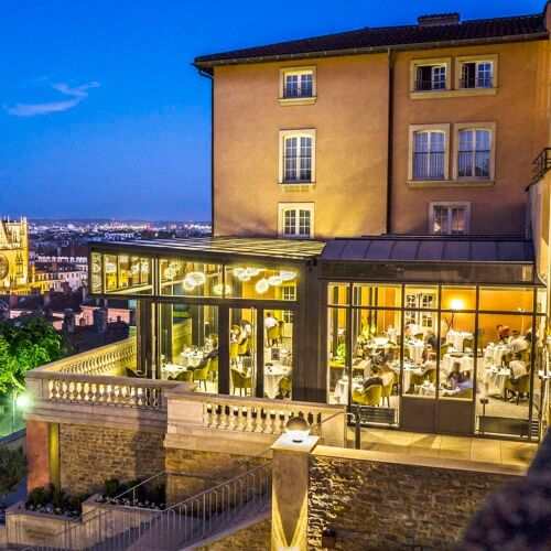 On the famous Fourvière hillside, this former Renaissance convent now houses a restaurant with a panoramic glazed dining room that commands a splendid view over the rooftops of historic Lyon and St Jean Cathedral. The talented chef puts a regional spin on Gallic traditions: ravioles of rigotte cheese, free-range squab sautéed in Bresse butter, rump steak from the Auvergne mountains and a frothy whipped béarnaise sauce… All of which is served in a stylish setting.