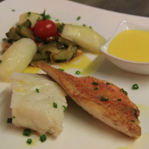 It is worth seeking out this little place up a cul - de - sac in the heart of the old town. It features a lemon yellow decor and traditional cuisine based on the freshest produce.