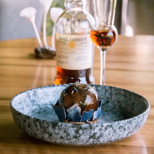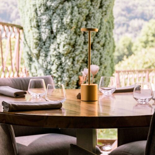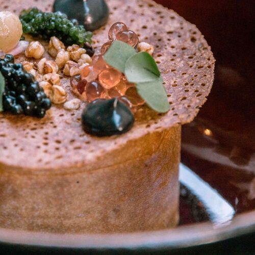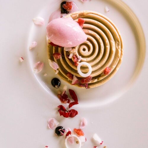 In a peaceful hamlet at an altitude of 600m and occupying a former 15C stronghold, the cosy, warm interior is depicted by stone walls and picture windows overlooking the Belledonne mountains. You are greeted by five immaculately laid round tables in a room bathed in light, ready for an encounter between nature and good food. Pierre Troccaz signs a carefully curated, inventive score, mingling local produce, aromatic herbs from the garden and a few well-chosen exotic notes, embodied by blue lobster flanked by a frothy espuma of Beaufort cheese and fragrant confit tomatoes. Regional specialties such as caïon (pork) in wild garlic and a crunchy-melt-in-the-mouth stuffing are emblematic of the chef’s passion and enthusiasm. His wife, Éloïse, warmly and seamlessly pampers diners. Pleasant guestrooms for overnight stays.