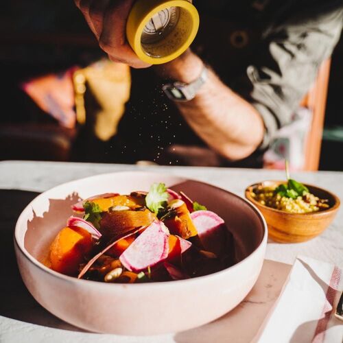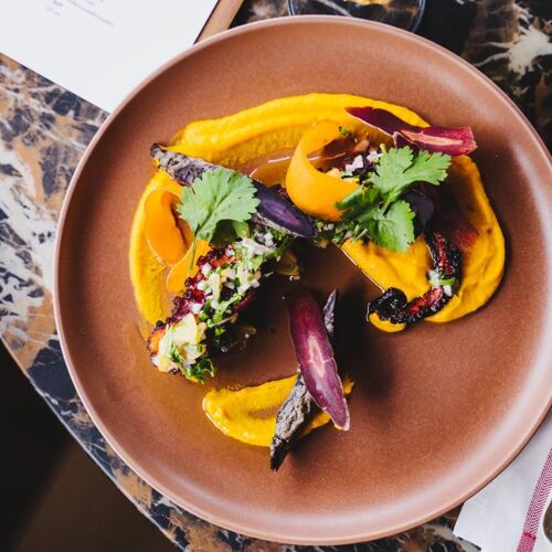 Flowers and colours abound in this spruce-looking bistro, both in the decor (floral wallpaper, varnished porcelain knick-knacks) and on the plate: tuna tartare, pumpkin seeds, grilled butternut condiment, anchovies with green pepper; roast fillet of sea bass, panisse (chickpea fries), saffron, fennel. This cuisine in tune with the zeitgeist is delivered by a professional couple – themselves the offspring of restaurant owners – who work in tandem. French classics that are the winegrowers' favourites and cuts of meat to share are also present and correct.