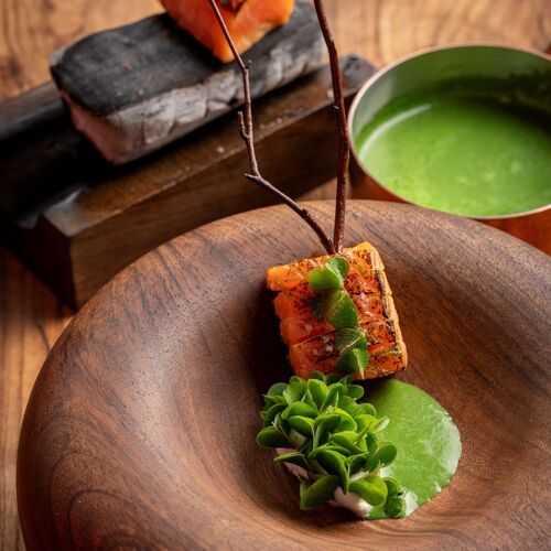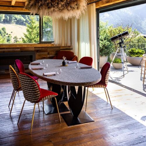 Forclaz Pass (1 147m) is not just a paradise for paragliders, but also for fine food lovers, thanks to this restaurant, which has been refurbished and extended without losing its snug Alpine appeal. Chef Florian Favario adds an increasingly creative spin to cuisine based on the best of local produce (eg lamb and piglets, home-grown vegetables, seasonal fruit). He masterfully combines wildflowers, plants and herbs, such as thyme, sage, oregano, agastache, hyssop, mint flower etc. The resulting feast of extraordinary scents elevates dishes that are already at the apex of culinary technique and know-how. These detailed dishes, presented in walnut tableware designed by the chef himself, are brought out of the kitchen by a crack team led by an attentive Sandrine, the chef's wife. A drink before dinner on the terrace is the perfect opportunity to take in the view of the mountain pastures.