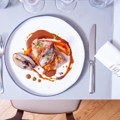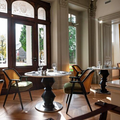 Located in a handsome mansion near the Chartreuse cellars, this tastefully redecorated brasserie, which sports a striking white staircase leading up to the first floor, offers a patriotic line-up of Gallic fare, such as velvety Dubarry soup and curry; Mille Pas pâté en croûte; Dauphiné ravioles, among others. Tributes to the bountiful Voiron region abound, hence the melt-in-the-mouth slow-cooked pork belly à la Chartreuse and a decadent iced dessert, also perfumed with green Chartreuse. Delightful welcome and service.