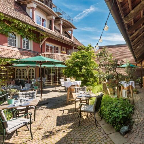 Here, tradition rubs shoulders with current trends in cosy little spaces that feature an attractive blend of old brickwork, wood, steel and glass. The regional and seasonal cuisine is scattered with international influences. Medieval vaulted cellar for events. This family-run business also offers attractive, individually designed guestrooms and wellness facilities.