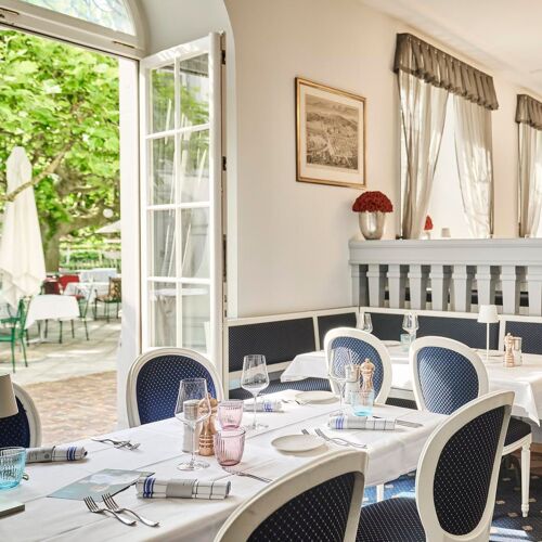 The brasserie is a wonderful addition to the gourmet restaurant ‘Louis’ on the magnificent historic castle estate. Here you can enjoy French brasserie cuisine made from fresh produce, from ‘Beef tartare classique’ and ‘Moules marnière’ to ‘Veal ragout Blanquette de Veau’ or dishes for two, such as ‘Chateaubriand’, in a classic ambience for lunch and dinner. The well-stocked and extensive wine list is the same as that of the ‘Louis’. In summer, the terrace facing the moat under shady old plane trees is an idyllic spot.