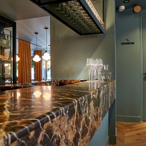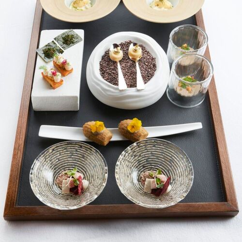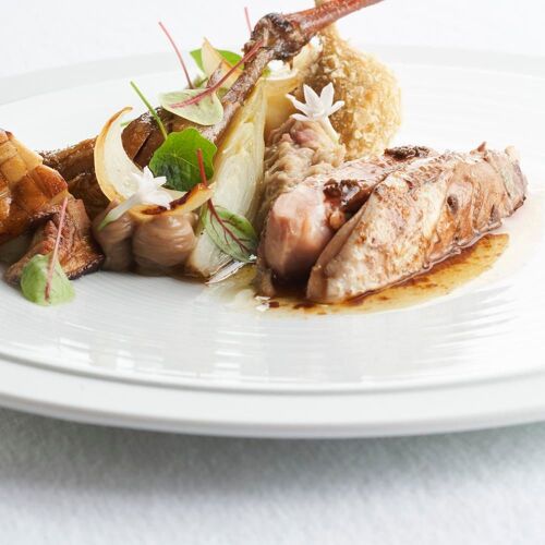 Surrealist art by Marcel Duchamp and Jacques Charlier sets the distinctive arty scene in this colourful restaurant, enhanced by a warm welcome and a cornucopia of luxury details. Head for the patio in fine weather to make the most of the historic village of Durbuy. Rather than surrealistic, the food embodies the essence of a Michelin one-star establishment: taste! Renowned chef Wout Bru lets his ingenious creations and deftly crafted dishes speak for themselves, zooming in on outstanding produce, which he flanks with unexpected combinations oozing with Mediterranean charm. Langoustine, cooked to perfection, is paired with a big-boned court-bouillon and the salty, buttery flavours of caviar. Various textures of cauliflower add an earthy edge, while a white wine sauce of crunchy samphire adds the finishing touch to this high-flying dish. Each surprise is underscored by familiar flavours, such as saddle of hare that is paired with a gutsy Harlequin sauce. Insightful wine pairing suggestions further heighten the diner’s pleasure, as does the superb cheese platter. The dessert trolley is in a class of its own, piled high with wickedly enticing delights like a Paris-Brest, a millefeuille with vanilla ice cream or a chocolate cake to die for! Every detail has been endlessly puzzled and pondered over at Le Grand Verre.