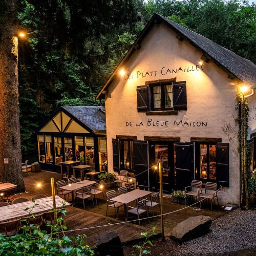The picture postcard scene features a blue-shuttered gingerbread house poised between two rivers. The exquisite neo-rustic interior exudes a romantic vibe. Brice and Martin Thiry have added gusto and verve to this family business. They favour local produce and juggle with modern flavours such as acidity whilst respecting the ethos of traditional recipes. So, fancy sharing a rib of beef, carved in front of you, washed down with a glass of full-bodied wine? Good food and good vibes are the backbone of this endearing eatery.
