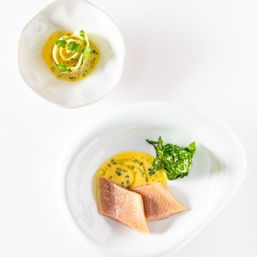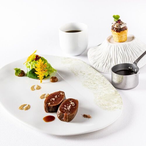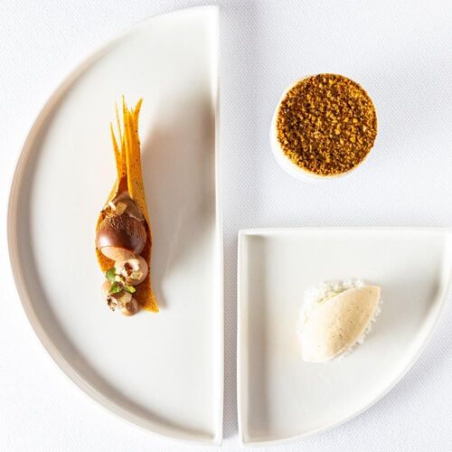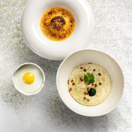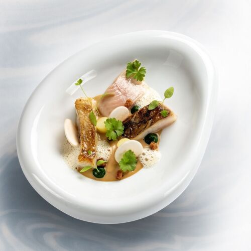 This 19C former coaching inn bang in the heart of historic Dijon is the HQ of one of Burgundy’s most talented chefs. A local lad and son of restaurateurs, William Frachot, who is something of a globetrotter (England, Quebec), devises stripped-back dishes in his own image: serious and applied, juggling international flavours and regional produce. He adds just the right dose of inventiveness and energy, illustrated by his new take on eggs meurette and his steadfast commitment to freshwater fish (perch, black bass, pike, zander) depicted by brook trout, zander and river fish soup. Meals are served in a distinctive interior featuring light wood cladding, grape vine motifs and mustard yellow swivel Shark chairs - each design choice is a nod to Burgundy's heritage. Inspired and accomplished cuisine peppered with influences from near and far.