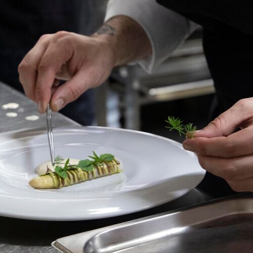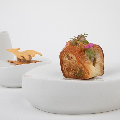 Suite 22 occupies the former stables of the Palacio del Marqués de Castromonte in the heart of the city, where its welcoming barrel-vaulted dining room, bringing together past and present, comes as a pleasant surprise. Chef Emilio Martín's approach, with a contemporary seasonal menu, several set menus, and the option of sharing dishes, reflects a modern yet invariably self-taught and personal style of cooking, with well-balanced flavours that seek to break away from established norms. The chef, who considers Iberian pork to be one of his preferred ingredients, also likes to incorporate nods to French (Paté crouté) and Asian cuisine (Chipirones kimchee). Don't miss his famous Corchifrito pincho!