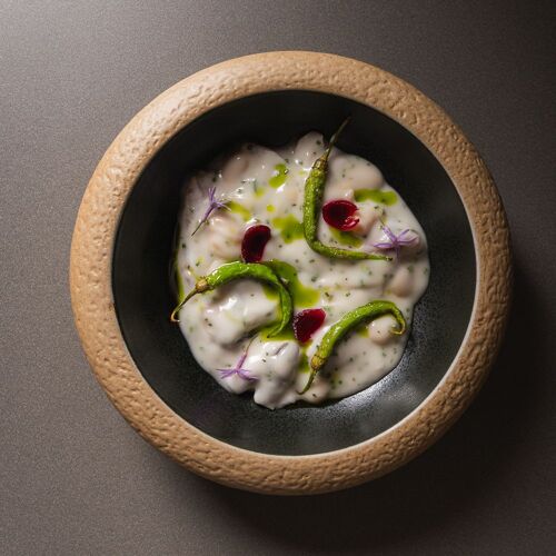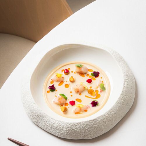 In this modern and contemporary restaurant, the standout qualities are the constant attentive service provided by the owners and the extraordinary quality of ingredients used. The cooking here, which is modern but with an eye on the past, aims to offer as many options as possible, hence the possibility of half-portions for dishes on the à la carte and the choice of two tasting menus (Petit and Essencia). Standout dishes include the superb seasonal Maresme peas (which are mixed with a pil-pil broth, cod tripe and truffle shavings), the texture and aroma of which were a delight, and Divinum’s version of “escalivada”, a very typical dish that has been completely transformed and deconstructed and includes an original sweet touch. The excellent cheese trolley features over 20 different varieties.