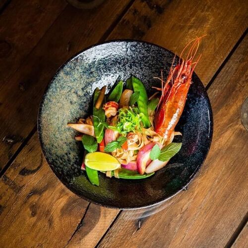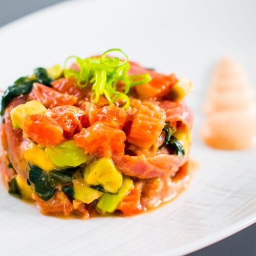 A perfect example of friendship, hard work and, above all, an unconditional love for cooking. Here, the three owner-chefs at the helm, Carlos Langreo, Vicente de la Red and Gabriel Zapata, each specialise in a different type of cuisine (traditional Mediterranean, Japanese and Nikkei) but who are receptive to new trends and an inclination towards fusion cooking. The atmosphere here is both welcoming and informal with a vintage decor that includes slender wrought-iron columns. The à la carte, which is geared towards sharing and features dishes such as Pacific scallops with jalapeño aguachile and “pico de gallo” salsa, and the pig’s ear “mollete” sandwich with a spicy Korean salsa, toasted garlic and herb alioli, is complemented by two menus (Short and Long).