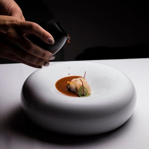 It was clear that Gofio’s cuisine needed a change of scenery and a larger space in which to give full rein to the cuisine of the Canary Islands and at first glance it seems to have worked! The new premises, located in a street parallel to the ever-busy and bustling Gran Vía, is laid out on two floors with a private space at street level and the main dining room in the basement, in the style of a modern bistro with an open kitchen. The Tenerife-born chef at the helm, Safe Cruz, showcases the traditional flavours of the islands from a creative perspective on three tasting menus (Gofio Express, Canariedad Máxima and Canariedad Máxima Plus) that successfully convey the essence of this volcanic archipelago through an array of small bites. These include the “salpicón” of red tuna with a coriander mojo and “causa” with Palmera pepper; white prawns with a prawn head mojo and cardamom mojo; and baked red mullet with a jus made from its bones and chive oil, all of which are meticulously prepared and are full of flavour.