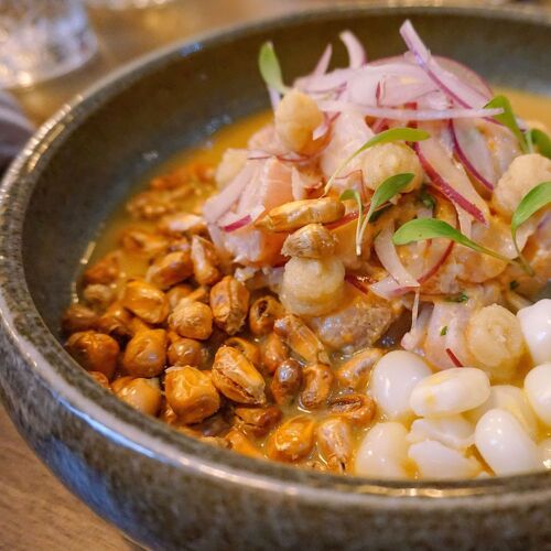 If you enjoy street food, this restaurant overseen by Álex Marugán (of Tres por Cuatro fame) is entirely focused on just that. Here, in this informal, rustically inspired space with a bistro vibe, the duo of Rocío Martínez and André Chumbe offer a fusion that plays with the flavours of Spain, Peru and Mexico through dishes designed for sharing (half-portions are also an option so you can try a little of everything). One particularly special, highly original and delicious dish that we can recommend is the menestra stew with peanuts, herbs and egg.