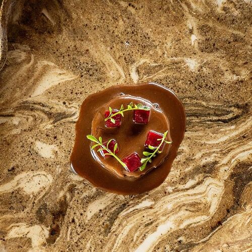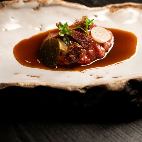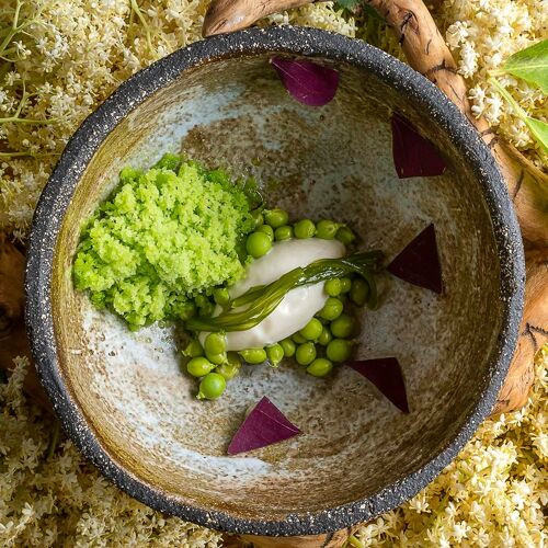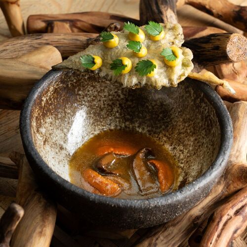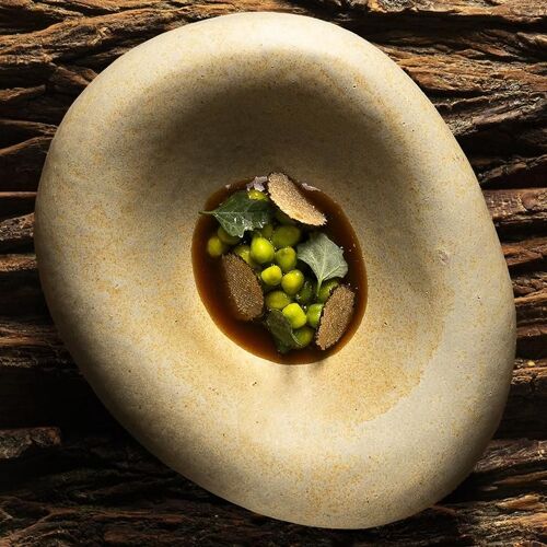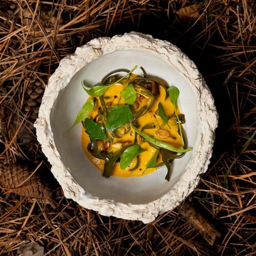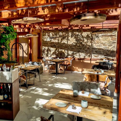 If you’re keen to eat in a unique setting and somewhere with its own philosophy, Montia (a restaurant where the surrounding mountain landscapes provide the cornerstone for its cuisine) could be the place. It boasts a rustic-contemporary ambience which could not be more welcoming, featuring attractive natural wood tables and an open-view kitchen between the two dining rooms (one by the entrance with a fireplace, the other overlooking a small garden). Chef Daniel Ochoa, who can constantly be seen serving and explaining dishes, sees himself as both a farmer and forager. This is clearly evident in what he calls his “wild cuisine” that evolves with the seasons and flies the flag for small-scale local producers and is showcased on two menus: Montia and Montia XL. Standout dishes include the “callos” (tripe), one of the best to be found anywhere around Madrid, and the “pepitoria” of milk cap mushrooms and sea urchins.