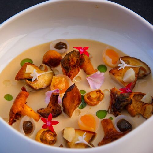 Occupying an attractive old farmhouse by a crossroads, this restaurant has a name that recalls the wheelwright trade in bygone days. It features a pleasant terrace for an aperitif or coffee, several attractively laid-out dining rooms (one with a fireplace), plus a contemporary à la carte and an excellent tasting menu with a focus on Mediterranean ingredients.