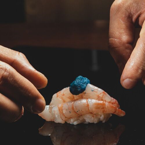 His philosophy is built around the Edomae Sushi tradition (established during the Edo period from 1603-1868) of preparing the (at the time abundant) fresh fish and seafood caught daily in the waters of Tokyo bay. The same idea permeates the cuisine here, which nowadays is based around the superb natural bounty of Valencia’s coastal waters, with a special focus on the red prawn. Nigiris feature heavily on the menu here.