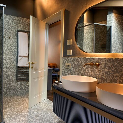 A historical palazzo in the town center has been given new life after its purchase by a local entrepreneurial family, who also bestowed their name upon it. Just steps from the heart of Italy’s famed food valley, it now serves as a refined hospitality venue: the ground floor hosts a bar and bistro, while upstairs are elegant spaces devoted to gourmet cuisine. Tasting menus are available, with dishes also offered à la carte, alongside an extensive and well-curated wine list. The upper floors feature intimate, stylish guest rooms, designed in the same reassuring style that runs throughout the building.