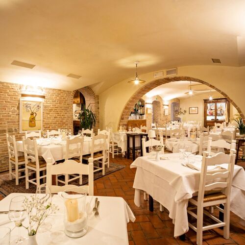 The prototype of a typical Romagna restaurant, run by an efficient and friendly family team. Excellent choice of high - quality first and second courses, including fresh pasta, hams and salamis, meat options and grilled dishes. An interesting feature of the restaurant is the presence of ancient tufa caves in the basement. Created around 400 AD and part of an intricate network of underground passages, they were later used by the Malatesta family as an escape route and are now open to the public.