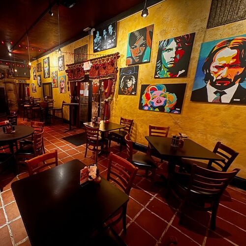 There are good vibes all round. The décor is eclectic and bears a whimsical slant by way of bold colors, lots of artwork, a dark, sultry bar, as well as tightly packed tables. Interior accommodations are supplemented by ample outdoor seating.