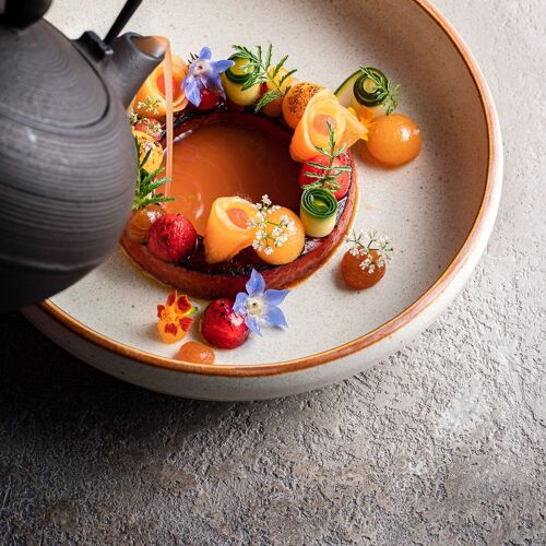 In a chic setting with a romantic view of the Jura mountains and Lake Geneva, you can enjoy a soul-warming, traditional score, zhuzhed up with a modern twist. Think salmon tartare, soufflé of zander from the lake, English sole or seabass in a salt crust (to share), without forgetting Thai beef tartare or raw vegetable nems. This enticing lineup is paired with a fine wine list that boasts a few Swiss and French gems. A private modular room is available for hire, the terrace overlooks the cottage garden, while upstairs, the “bar beneath the rafters” is the quintessence of Swiss chalet charm.