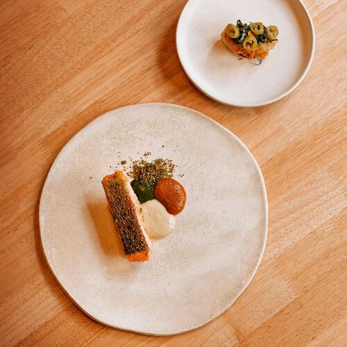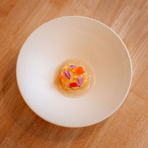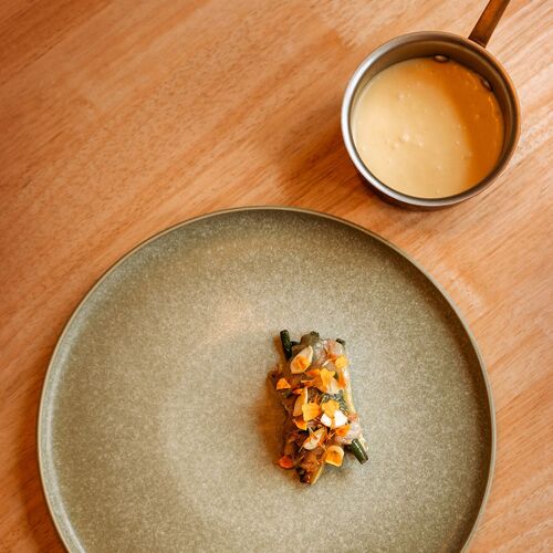 In the heart of a small wine-growing village, this Utopia is being nurtured by a couple we first met in Strasbourg. Now installed in this handsome old edifice enhanced by contemporary fixtures and fittings, the experienced chef (George V, Pierre Gagnaire, Jean Imbert…) crafts a set menu in several courses in which vegetables take the limelight: green peas, sorrel, hemp oil; romaine lettuce, tarragon, black garlic and meat jus. Insightful wine-food pairings.