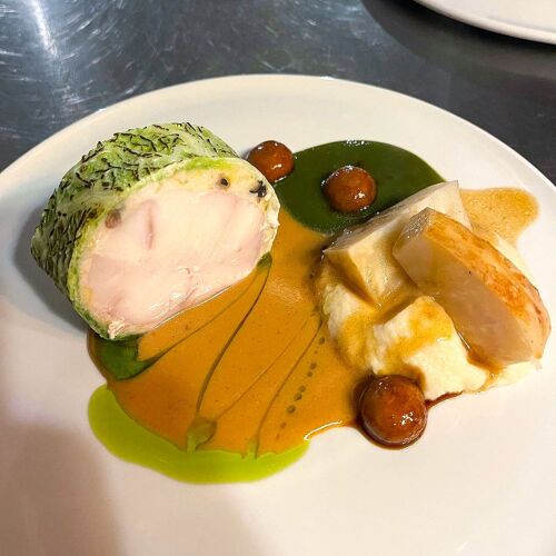 Previously active in the humanitarian sector, this chef found a new calling while being trained by mentors such as Cyril Lignac and Hélène Darroze. Remaining true to his ethos here in his vintage restaurant, he is mindful of the relationship between his cooking, nature and people, sourcing vegetables from the Hortillonnages (cultivated islets in Amiens), saltmarsh lamb from the Baie de Somme estuary, line-caught fish from the Côte d'Opale etc. Filet mignon pie, vegetable pickles or monkfish, tomato, aubergine and sea herbs: his – at times creative – dishes draw on various preparation techniques, good ingredients and flavours.