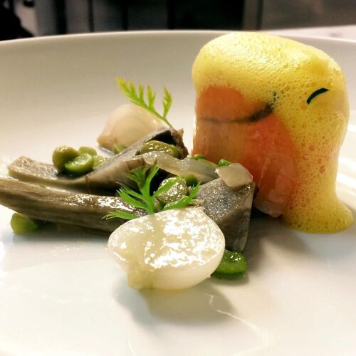 In this pretty inn, you simply decide how many courses you would like and the chef will do the rest! The young chef is rather bold in his cooking, sometimes dreaming up original combinations of flavours (no bad thing in this region where tradition reigns supreme). Pleasant, efficient service and good value for money. It is worth noting that a new shop adjoining the restaurant has been opened for takeaway dishes, from starter to dessert, concocted by the chef.
