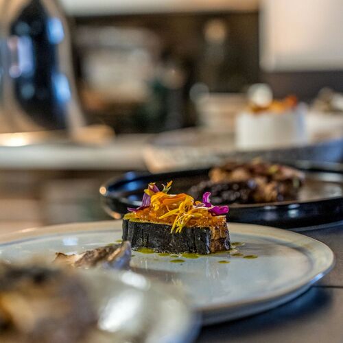 At this beautifully renovated farmhouse (formerly the village café), built with red bricks from the Artois region, the ingredients are of certified origin, and chef Maëllie Poynard has plenty of original ideas about how to use them! Judge for yourself: chocolate sauce on the beef accompanied by peach and chard; gherkin on the rhubarb dessert, carrot on the pavlova... Her pairings – sometimes daring – are pitch perfect. As for the decor, it is 100% contemporary. The traditional brasserie, on the same premises, is run by the chef's partner (who works front of house).