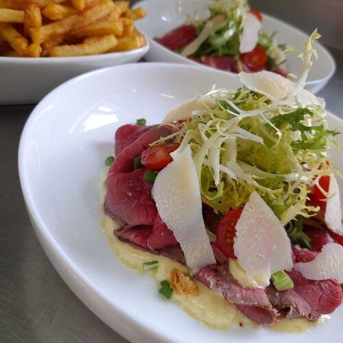 This village restaurant with typical local architecture is located in the heart of this market town. It is the HQ of a chef who proposes a set menu at an unbeatable price during the week, and more elaborate dishes at the weekend, when some premium ingredients are deployed. Menu and produce regularly adapted. To enjoy in a chic and convivial interior.