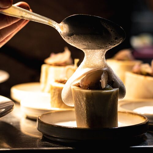 The top floor of this entirely revamped 18C salt barn is home to a fashionable, stripped-back restaurant decked in raw materials that commands a panoramic view over the Somme Bay. According to the dictionary, a schorre (or a salt marsh) refers to an “upper coastal intertidal zone of thick mud, covered by grass and regularly flooded by high tides”. Chef François-Xavier Sailly regularly renews his creative gourmet score with unexpected combinations. Examples: snails with marrow bone, risotto of celery and pot-au-feu-flavoured beurre blanc; medallion of lobster in verbena butter, risotto and green peas; rhubarb confit, geranium sabayon and a foamy dairy mousse.