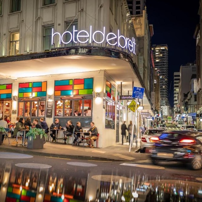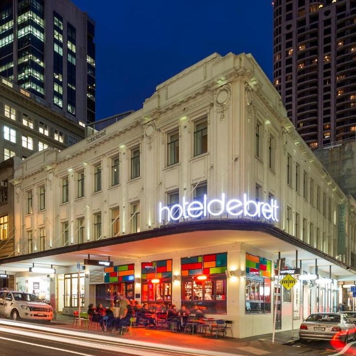 Downtown Auckland evolved dramatically in the first decades after the Second World War, and has continued to do so: its central business district is now as modern as any world capital. With one exception. High Street, running in parallel right alongside Queen Street, the city’s main thoroughfare, fell into neglect and disrepute — and, along with it, so did the landmark Hotel DeBrett. But as so often happens in down-at-heel city-center districts, High Street is now prized for its historical character, and has become one of the city’s hippest neighborhoods — as, along with it, the renovated and reimagined Hotel DeBrett has become one of the city’s hippest hotels.