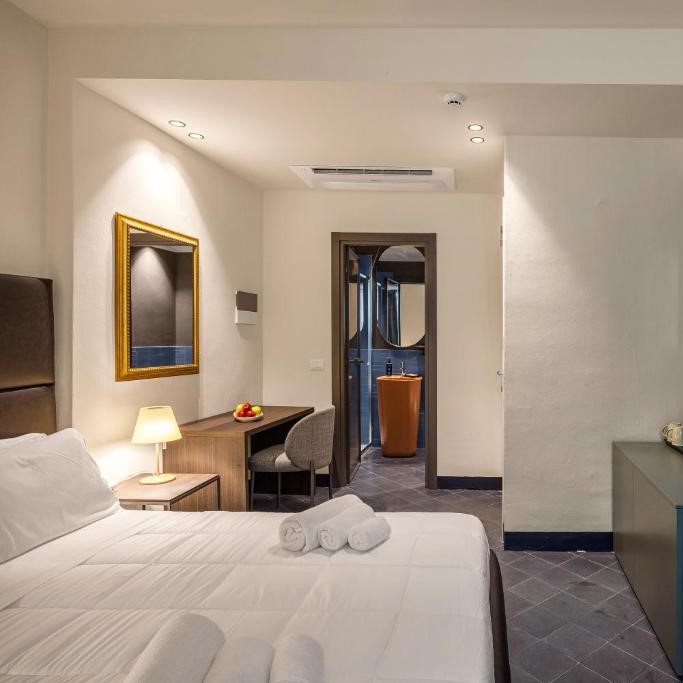 In Palermo’s historic center, just off Via Maqueda, Locanda Santamarina revives an inn that once welcomed the city’s merchants and noble travelers. The restoration reveals vaulted stone corridors and contemporary detailing in equal measure, creating a space that feels both storied and current. From the rooftop terrace, where chef Pino Cuttaia oversees the bistro, stretches out in domes, a reminder that history here is never still, only beautifully layered.