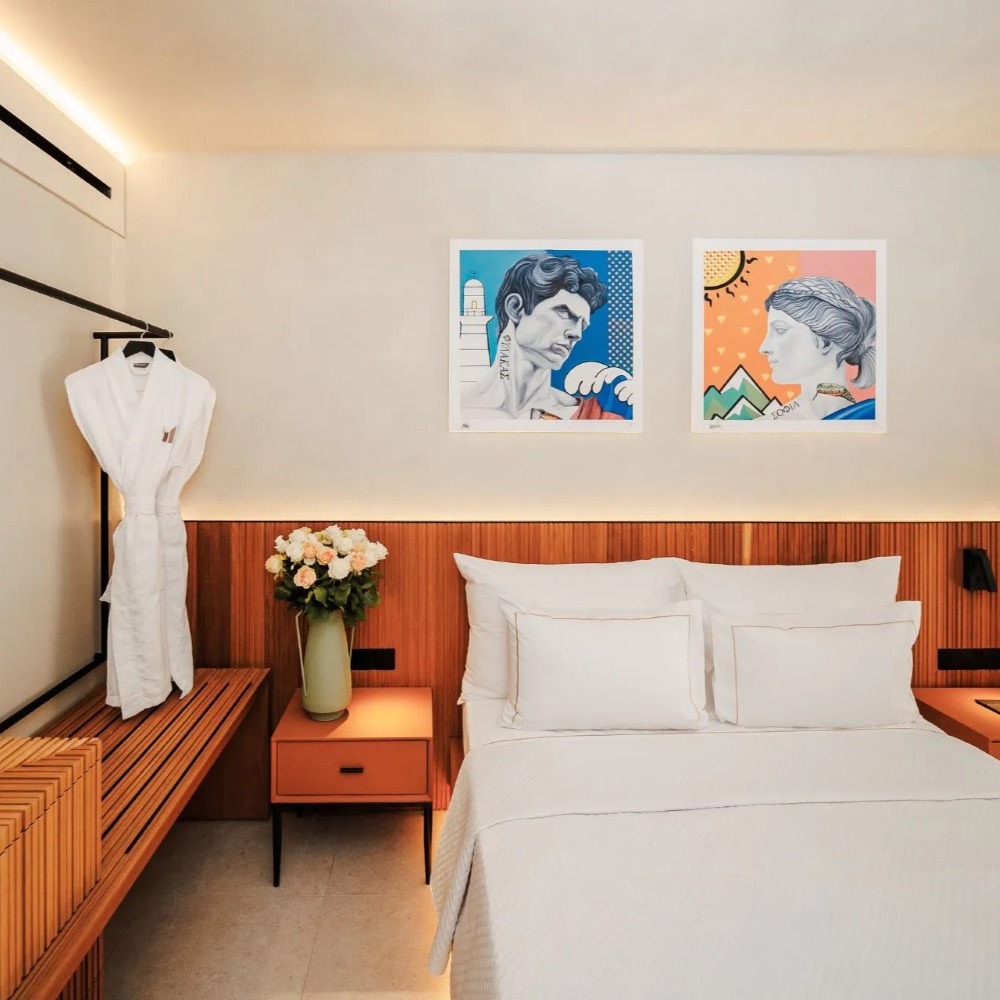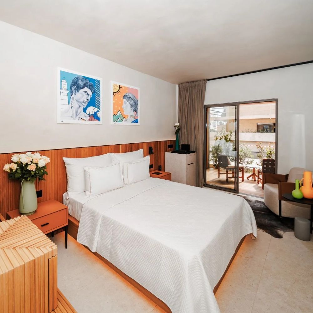 M Boutique Hotel is a contemporary hotel with a personal backstory. Built on the bones of the old Daphne Hotel, one of Paphos’s first post-war lodgings, it was reimagined by Anthimos Economides in honor of his mother Maria, the original matriarch behind the family-run hotel. Today, it is an adults-only stay designed for couples, with minimalist rooms, warm wood tones, and, in some suites, private pools. Geppetto, the house restaurant, takes its cues from the nearby mountains, serving local wine and Mediterranean dishes with a seasonal focus. The sea and harbor are just a short walk away.