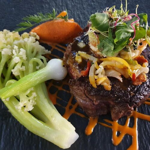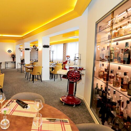 In an elegant, pared-back setting, you can enjoy cuisine made with top-notch produce by chef Jean-Claude Cahagnet, whose experience can't be argued with and who leaves us in no doubt about his penchant for herbs and spices. Regular diners keep coming back for the high-quality matured purebred meats, presented in a tempting window display. The hostess provides a warm welcome and impeccable service.