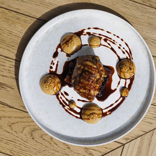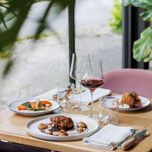 Situated opposite the Abreuvoir – the ‘Watering Place’, framed by its famous sculpted horses, this old bourgeois abode is now home to a delicatessen, a wine shop and a restaurant, enthusiastically run by a dynamic team. The restaurant occupies a lovely conservatory with herringbone parquet flooring and an unrivalled view of the Abreuvoir. The chef crafts modern, well-polished dishes: organic œuf parfait, green lentils from Le Puy, smoked herring, parsley sauce and pickled shallots; confit of turbot in Mat-Khen pepper, braised fennel and citrus notes. A stroll in the park after your meal is just the ticket!