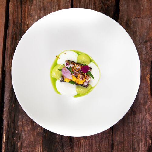 Picture an oasis of greenery in the urban fabric of the Parisian suburbs: as you make your way across the wooded grounds of this 19C villa, you will see a vegetable garden, beehives and even a greenhouse for citrus fruit. This lush exuberance sets the scene on the menu: aubergine marinated in dashi, Greek yoghurt, aguachile sauce; rainbow trout, horseradish and pine oil stock; barbecued duck, red cabbage and an aromatic verbena gravy. In fine weather, take advantage of the terrace dotted with white parasols and decorated with fairy lights. The vibrant, modern cuisine is served by a bouncy youthful team.