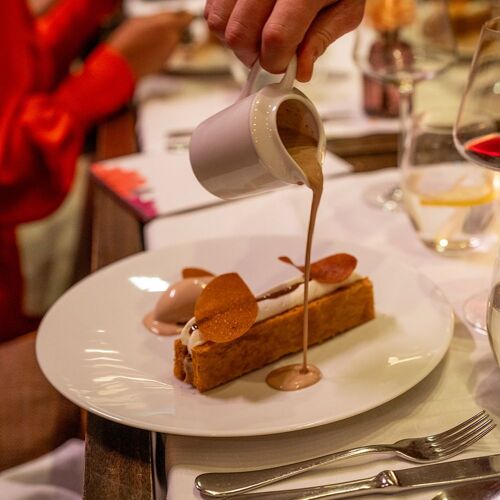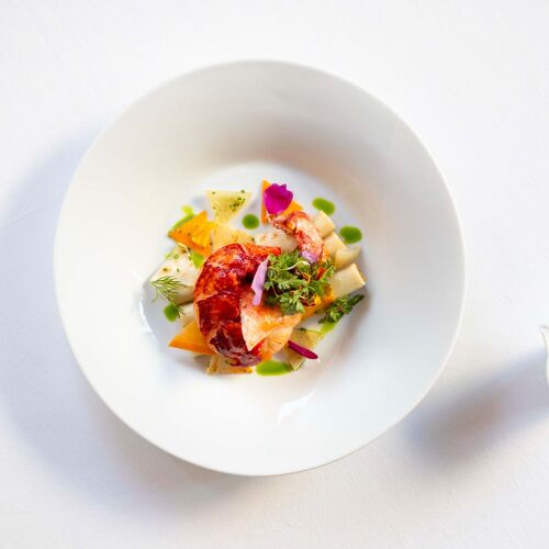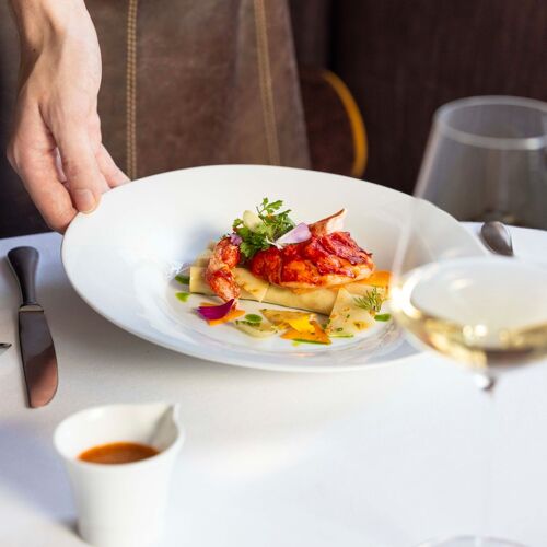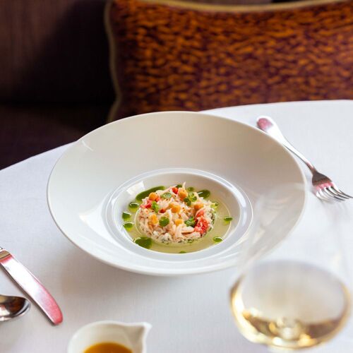 Situated within Le Bristol, this brasserie is truly one of a kind! The interior will win you over at first glance: interspersed with imposing gilded columns, it has large luminescent dahlia motifs on its orange walls. At its heart, a grand staircase opens up, leading down to the lower level where tables rub shoulders with the open kitchens. Chic, shimmering, both bustling and intimate, this place hits all the right notes. As for the food, this is a discreetly original take on the French classics we know and love. Dishes are carefully presented and flavours are beautifully combined. This is a lesson in how things should be done.