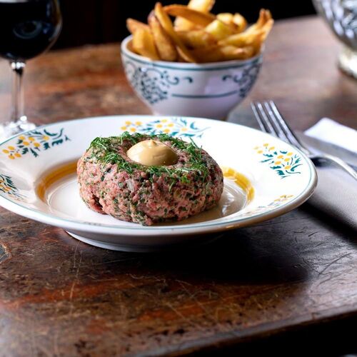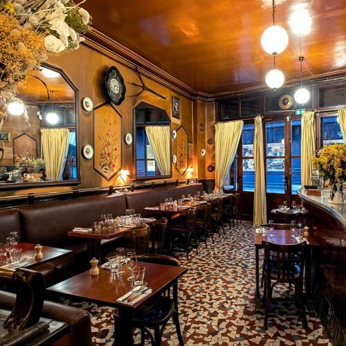 This quintessential Parisian bistro of the former Baltard market is the latest acquisition of Elodie and Jean-François Piège. The authentic vintage interior (old tiles and mirrors and stained walls) provides the setting for traditional fare that changes daily during the week. Also available: pork pie, croque madame, foie gras, steak tartare and chips.