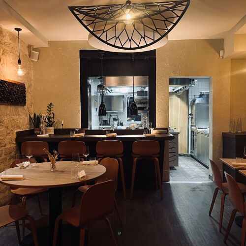 Overlooking the grandiose seat of the Senate (upper house of the French parliament) and the Luxembourg gardens, this friendly bistro in tune with its era sports untreated materials (exposed stone, brickwork and rafters), an open kitchen and a small counter. ‘Ambos’ (‘both’ in Spanish) refers to Pierre Chomet and his Venezuelan wife, Cristina. Their culinary adventures have taken them from Bangkok to London and Paris, and a Top Chef TV season for Pierre. Together they concoct a light-hearted, personal and vibrant tapestry of flavours which aims to please as it draws on a variety of influences – European (Castilian beef and Paimpol beans) and Thai (pad thai-style langoustine tartar,) as well as South American (stuffed arepa cornbread).