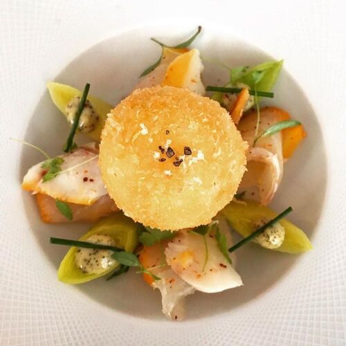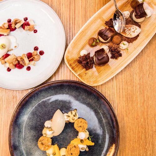 "Here, the bouillabaisse cosies up to the aioli and the pissaladière (tart with onions, olives and anchovies) hobnobs with the socca (chickpea flatbread), hot from the charcoal-fired oven": Julia Sedefdjian is happy and thriving. Her colourful, fragrant cuisine is an ode to the Mediterranean: roast and stewed venison, puntarelle and gnocchi or Kintoa pork, bao of BBQ pork belly, stuffed cabbage and jus… Julia painstakingly selects and creatively blends premium produce, without forgetting her Nice heritage. The "Bouillabaieta", a superb take on bouillabaisse, is a must and your tastebuds will be in seventh heaven as you embrace her surprise menu, Baieta (which means "kiss" in the Nice dialect)!