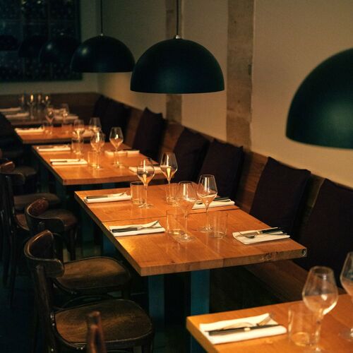 Pressé de bœuf (beef terrine), kale mayonnaise; roast mallard, glazed mini beetroots, confit legs; peanut chocolate, chocolate quenelle, ice cream and peanut praline: chef Guillaume Campion, like the pro he his, having worked in some of the best restaurants in the world, is embracing his role. With a sure hand, he delights diners with his lively bistro-inspired cuisine. In addition to the tables along the banquette, there are also larger tables, ideal for feasting with friends.