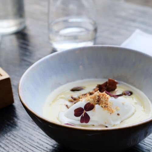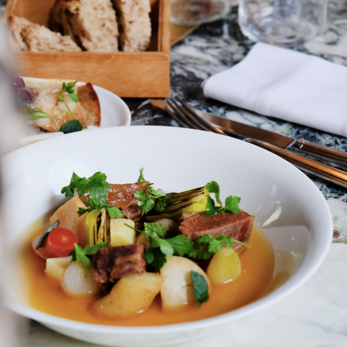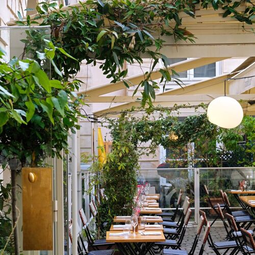Take a seat in the warm, welcoming interior (with exposed beams and stonework, marble table tops and velvet upholstery), or on the pleasant terrace in the picturesque, cobbled courtyard of the Marais Dance Centre. The brainchild of Mauro Colagreco, the pedigree Gallic recipes come with an international, often Italian twist… Examples include stuffed confit of lamb in a provençal sauce, Taggiasche olives and a gutsy gravy – high-flying culinary art!