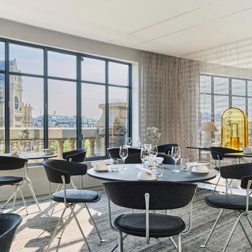 Not only is the old corn exchange home to part of the Pinault Collection, it also houses a highly creative restaurant. In homage to the history of the premises, Michel and Sébastien Bras take seeds, cereals and legumes as their starting point and cook up healthy and contemporary cuisine. Be sure to sample one of the delicious desserts, such as the chocolate and toasted vanilla fondant served warm – an interpretation of the 1981 original. Breathtaking view over the rooftops of Paris.
